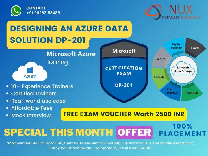 At Linux Training Center in Coimbatore, the DP-201 course prepares learners to build robust, enterprise-level Azure data systems using proven cloud-native design principles and tools.
